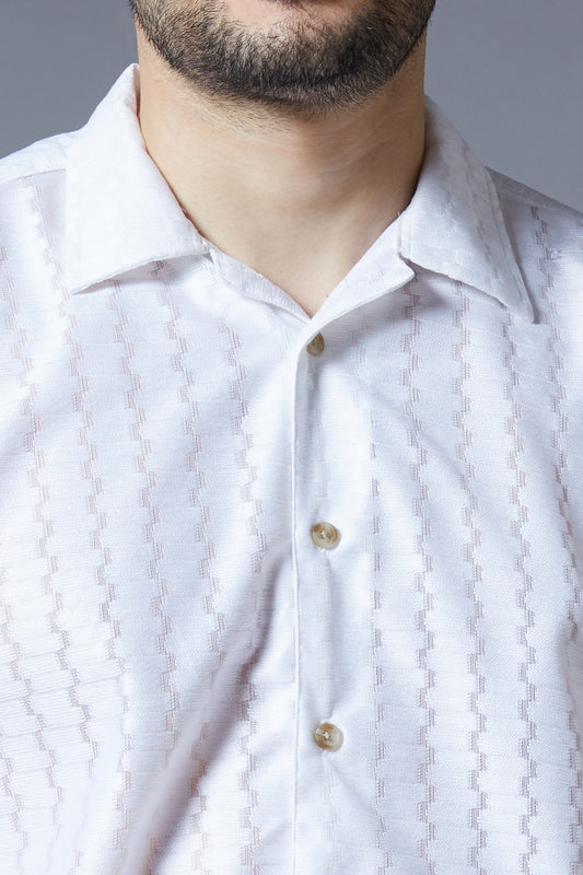 Kompanion Men's Cream Solid Shirt with Dori Work