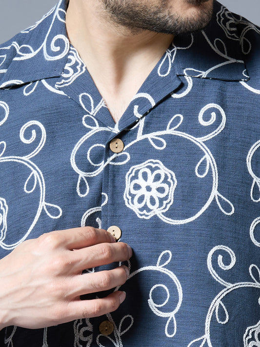 Kompanion Men's Navy Blue Solid Shirt with Dori Work