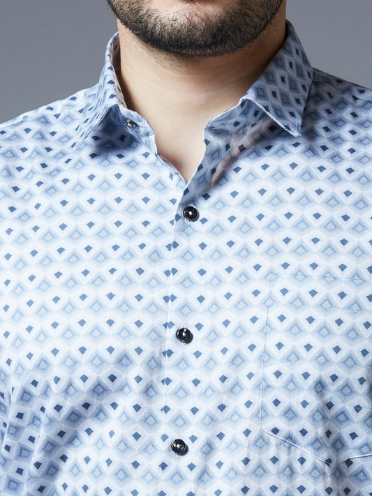 Kompanion Men's Blue Printed Smart Fit Cotton Shirt